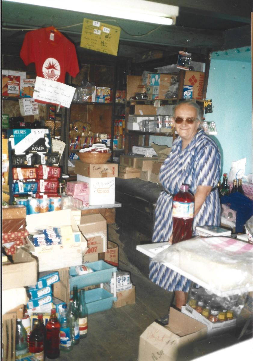 Quand Jean et Denise Meynadier se sont installés dans les années 1920 dans la ferme de la famille d’Aunis-Bourgade le cahier des charges demander qu’une épicerie soit ouverte dans la ferme. Lorsque Jeannette épousa Elisée Valat en 1944, le jeune couple s’installe dans la maison située au-dessous du temple et c’est là que l’épicerie fut transféré.