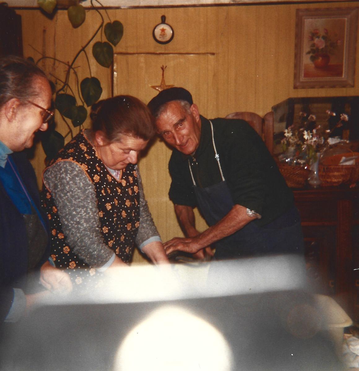La mercerie: Epingles, aiguilles à coudre, coton à repriser ou à broder puis bas de femme ou chaussettes. Au début des bottines pour les enfants; plus tard ce furent les espadrilles, des couteaux de cuisine ou pliant de marque Opine. Les grandes morues séchées étaient livré dans des caisses plates en bois qu’il fallait glisser sous un meuble! l’huile dans un gros bidon que l’on transvasait dans un arrosoir afin de remplir les bouteilles que chaque client apportait ( y reviendra-t-on ? ) La chaux vive était livrée dans de gros bidons qu’il fallait rouler jusqu’à la cave au sous-sol, les bouteilles de gaz étaient stockées dans un appentis à tenant à la maison. Au fil des ans la variété des produits s’est agrandi.