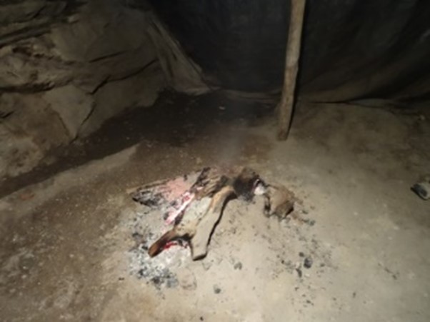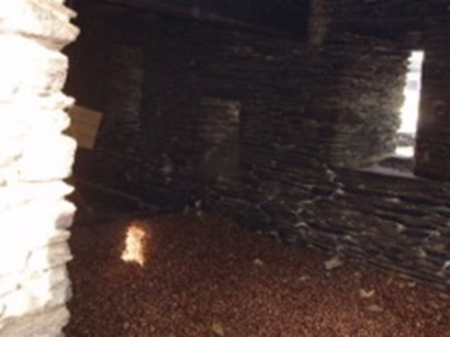 Au rez-de-chaussée, où on accède par une seconde porte, on fait un feu doux presque sans flammes: l’air doit être chaud, mais pas brûlant; cela doit sécher, pas cuire les fruits. On l’entretien avec des bûches de châtaignier assez grosses coupées quand on nettoie les terrains, et avec les peaux des châtaignes séchées l’année précédente, la pousse. L’air chaud et la fumée traversent la couche de châtaignes, leur donnent un bon goût de fumée en les séchant, et s’échappent par les tuiles du toit. On les remue régulièrement et au bout de plusieurs jours, deux ou trois semaines, on obtient des châtaignes sèches et dures