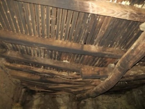 Une porte se trouve à l’étage et sert à vider les châtaignes sur un plancher fait de lattes de bois étroites espacées d’un centimètre pour éviter que les châtaignes ne tombent. On rajoute parfois un grillage fin. La couche de châtaignes déposée sur le plancher atteint 40 ou 50 cm.