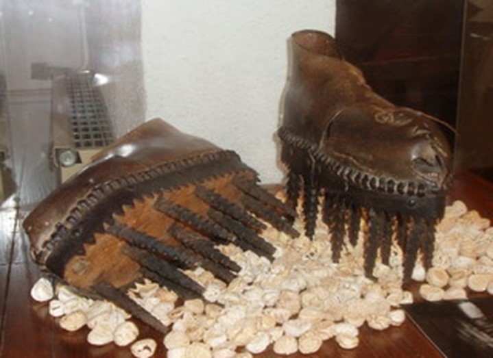 Il faut ensuite les piser pour les débarrasser de leurs peaux. Pour cela, on en faisait une couche et on les piquetait avec des sortes de chaussures à longues pointes, ou bien on les frottait avec des sortes de plaques. On pouvait aussi les mettre dans un sac et en frapper un billot. Plus tard, on utilisa des machines simples: une sorte de râteau tournait dans un tambour contenant les châtaignes. De toute façon, on remuait les châtaignes sèches un peu violemment pour qu’elles se frottent les unes aux autres: les peaux craquaient et se détachaient.