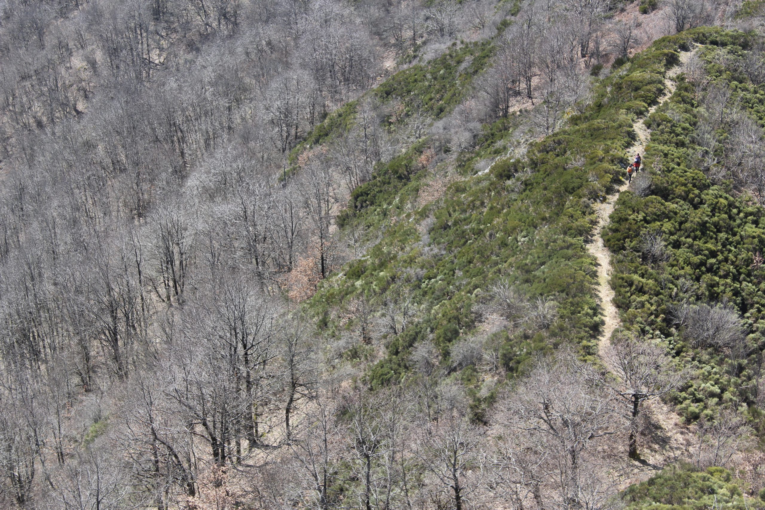 – soit la quitter deux ou trois virages plus haut pour rejoindre l’arête par un sentier peu tracé; je vous conseille évidemment cette seconde option, qui est plus sportive et nécessite un peu d’initiative (il faudra faire une petite section totalement hors sentier) mais beaucoup plus grandiose.