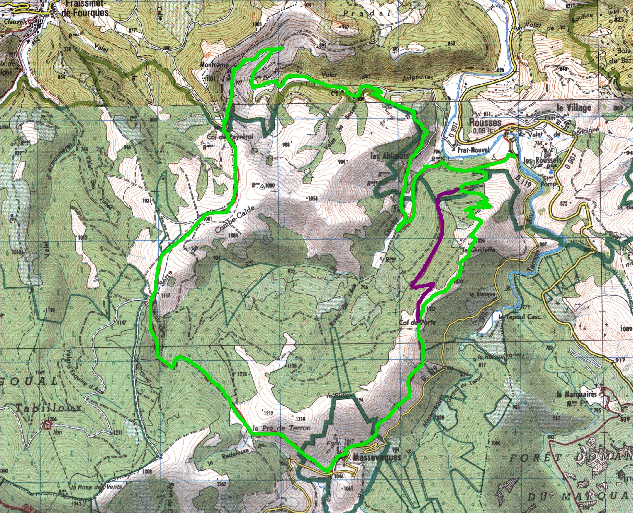 Descendre la route jusqu’au valat de Besset. Là, prendre à droite un sentier balisé qui remonte légèrement, aller jusqu’au hameau des Ablatats. Dans le hameau, chercher la piste qui descend vers la rivière. Traverser le pont, puis suivre la piste qui revient plein nord en longeant la rivière et rejoint le point de départ.