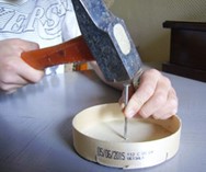 Attention, ce sera l’axe du moulin ! Il faut que le trou soit bien au centre sinon, il sera déséquilibré. C’est à cela que servira le compas: trouver le milieu exact.