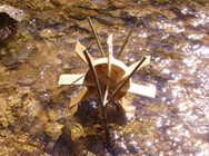 Il ne reste plus qu’à trouver l’endroit idéal. Il vaut mieux un bord où le courant est assez fort pour entraîner le moulin mais sans trop de fond. L’important est de bien prendre garde que le bout des pales soit toujours dans l’eau.