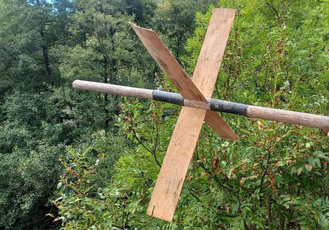Le plus difficile sera de trouver les deux supports. Il faut qu’ils soient en forme de Y pour placer l’axe dessus et surtout, qu’ils aient la même hauteur sinon le moulin sera de travers.