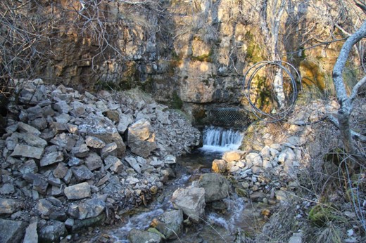 Toujours est-il que la nouvelle se répand. Un certain Mr Bazalgette du hameau de Malaval décide d’exploiter cette information pour alimenter le village en eau. Il fait creuser une galerie de 120 mètres qui, depuis le bas du vallon, rejoint directement la rivière souterraine à son point le plus proche. Une précision remarquable, sans doute calculée par des spécialistes miniers des exploitations alentour. L’opération est un succès : l’eau jaillit en abondance, et termine de descendre vers Malaval par cette voie naturelle toute tracée qu’est le vallon de Malpertus. Malaval est sauvé de la soif, mais pas des ennuis. La source qui alimente le hameau de Monteils, à un peu plus d’un kilomètre au sud-est, se tarit brutalement. Elle était alimentée par la même rivière souterraine, qui continuait son chemin dans cette direction.