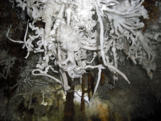 Pendant que les géologues prospecteurs travaillent, les amateurs ne sont pas en reste. L’existence du puits change leurs pratiques. La grotte peut maintenant se visiter en « traversée ». Et surtout, le second accès raccourcit considérablement le temps qui leur était nécessaire pour accéder aux parties amont de la grotte. Ce fait va accélérer les découvertes dans cette partie du réseau. Il y aura notamment les spectaculaires salles des « Blanches » et « Super blanches », présentant des concrétions d’une exceptionnelle finesse et diversité. Mais il y a de plus en plus de monde dans la grotte, et de nombreux vols et dégradations des concrétionnements seront constatés dans cette période.