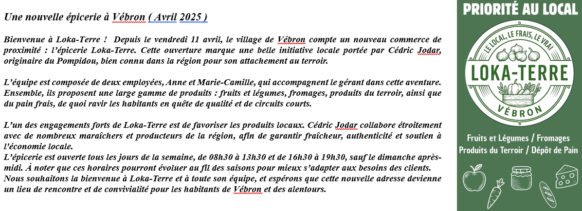 Services et commerces de la commune voisine – Vebron ( 7 km direction Florac )