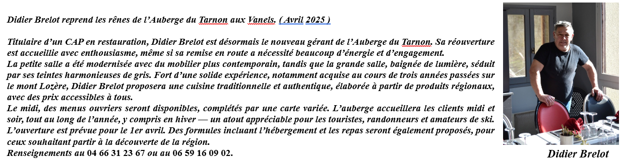 Tél : 04 66 31 23 67 – Mail : auberge48@orange.fr – Site web : auberge-du-tarnon.fr – Facebook